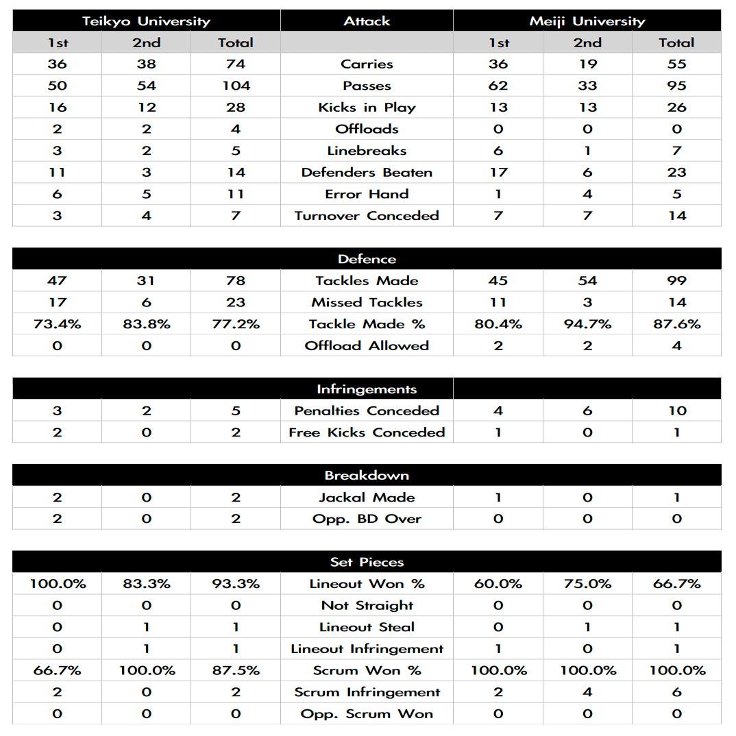 2023大学選手権決勝:帝京対明治を簡単な数字で見てみた