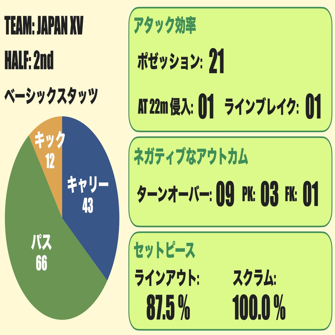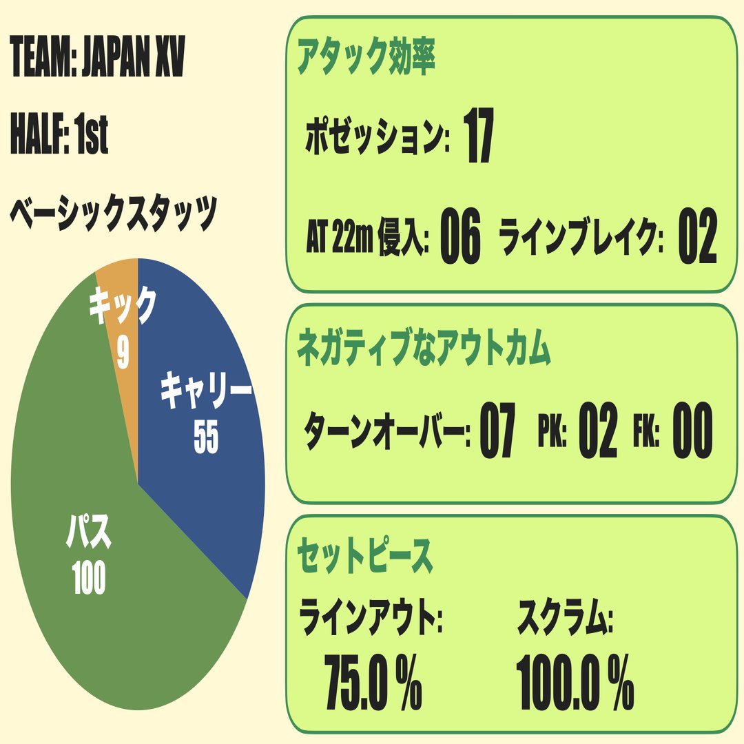 このスタッツからは、JAPAN XVが大きくボールを動かそうとしていたことが見て取れます。